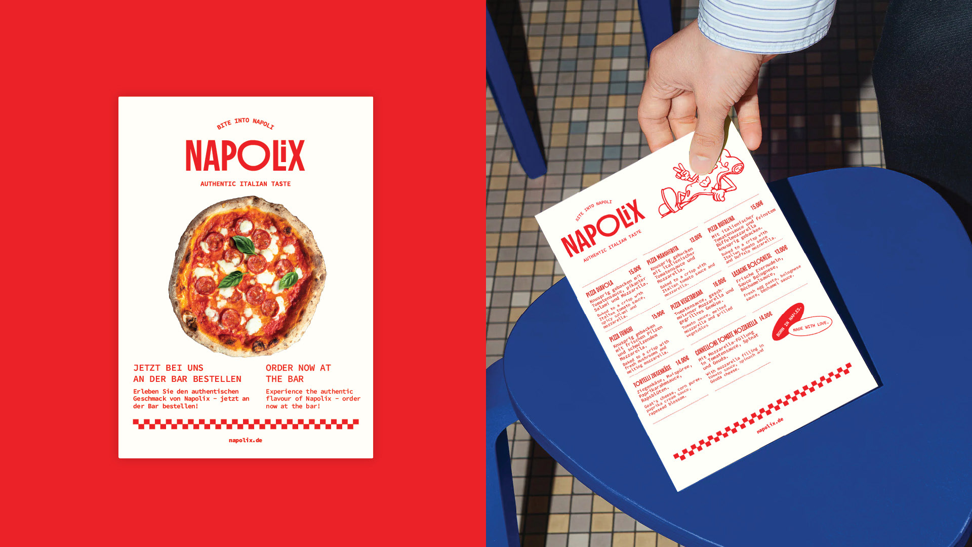 Napolix delivers “pizza like in Naples” as a delivery-first concept across Germany—made with original Italian ingredients, traditionally baked, and a 24-hour fermented dough for an authentic Neapolitan experience.