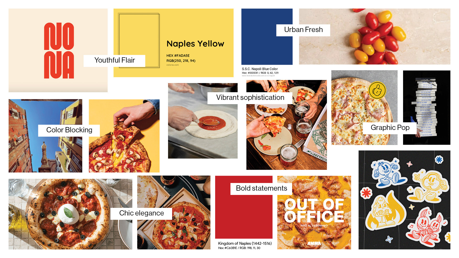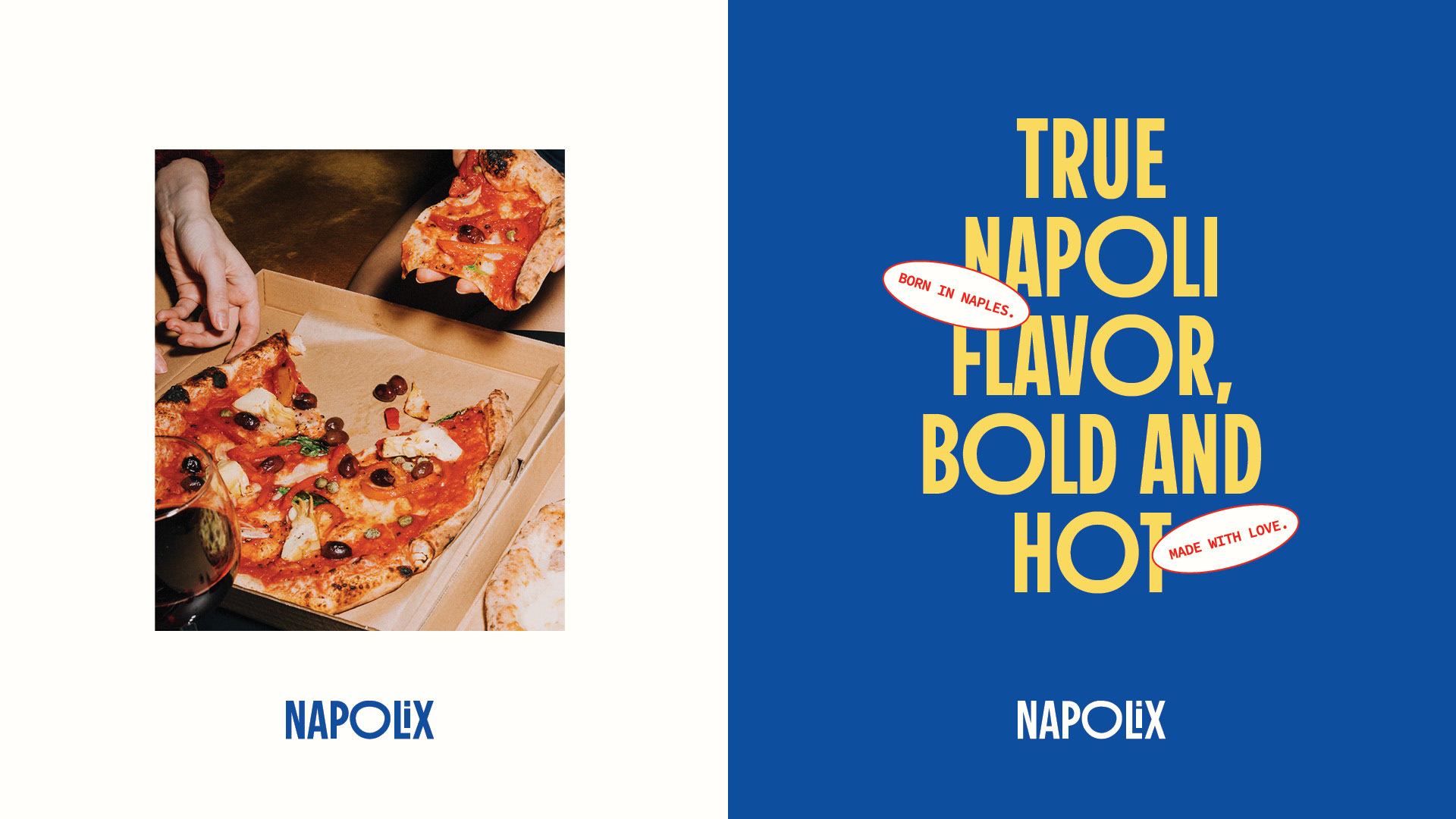 As the graphic designer, I created a bold, minimal brand system that translates Naples into a modern, urban look: strong typography, confident color-blocking, and an iconic illustration style—built to work across packaging, menus/flyers, and digital touchpoints.